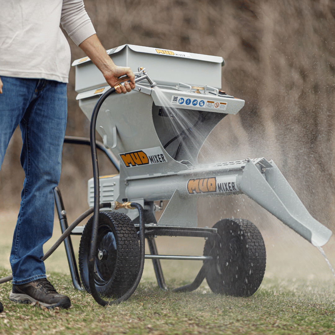 MudMixer eliminates the backbreaking work of hand mixing, the inconsistency of drum mixers, and the minimum fees of concrete trucks. You'll save on labor costs, reduce physical strain, and get perfect mixes every time.